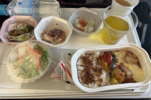 行きの機内食はさすがにJALということもあってか日本食に寄ってる感じがして、2回ともコメが食べられてよかったです。(帰りは麺が出てきました)